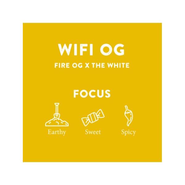 La Wifi OG possède un profil aromatique bien défini. Son arôme n'est ni sucré, ni fruité, ni parfumé. Il s'articule autour de notes sèches, terreuses et de pin, avec une pointe d'acidité caractéristique de la gamme OG. C'est cette netteté qui rend son profil reconnaissable et le distingue des variétés plus douces ou plus sucrées à base de terpènes.