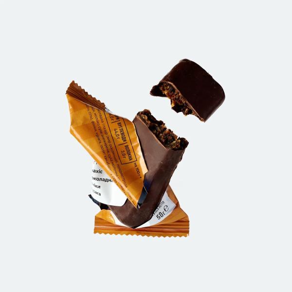 Універсальний варіант для щоденного використання. Чорнослив дає природну кислинку, горіхи додають ситності, а шоколадна глазур створює збалансований смак. Високий вміст клітковини (5.1 г) робить цей батончик оптимальним для травлення і стабільного енергетичного рівня.