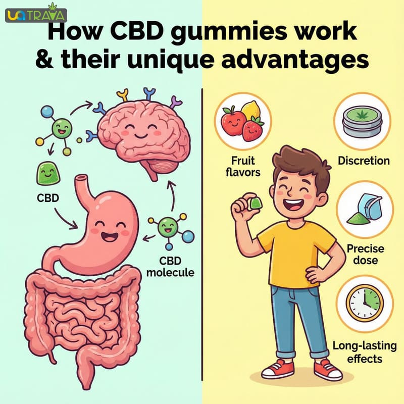 Багато користувачів обирають CBD gummies через те, що вони працюють м'якше і довше, ніж інгаляційні формати. Оскільки канабідіол проходить через травну систему, його дія розвивається поступово, а ефект зберігається рівномірно. Людина відчуває, як напруга розчиняється повільно, без різких піків і спаду. І саме тому CBD желейки стали для багатьох тим форматом, який легко додати у своє життя, не змінюючи звичний ритм.