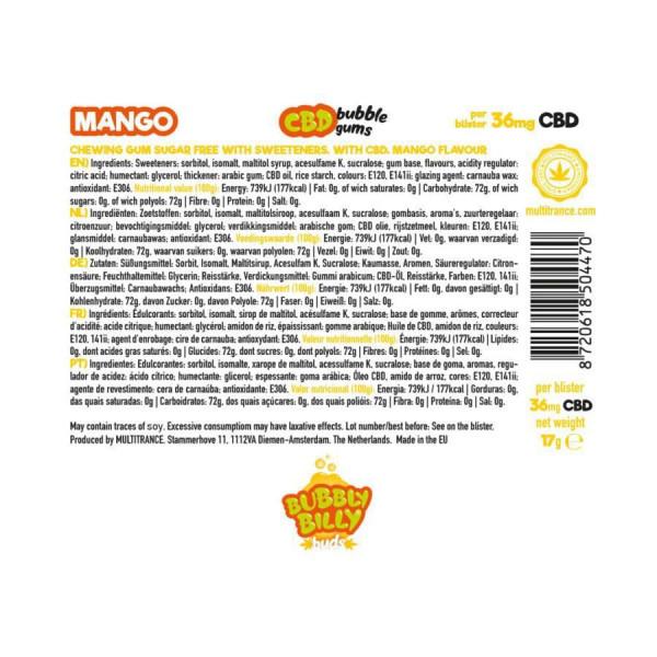 жувальна гумка, КБД, манго, без ТГК, легальний продукт, Bubbly Billy Buds, CBD gum, 36 мг КБД, без цукру, натуральний аромат