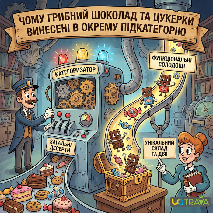 Грибний шоколад та цукерки мають власний характер і логіку використання. Вони орієнтовані на задоволення, ритуал і емоційний комфорт. Саме тому їх виділення в окрему підкатегорію допомагає швидше знайти відповідний формат і не плутати його з капсулами, порошками або желейками.