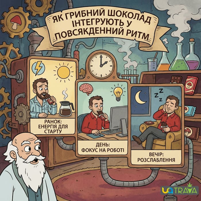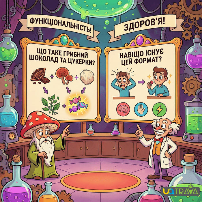 Для багатьох важливим є сам ритуал. Шматочок шоколаду або цукерка - це пауза, момент для себе, звичний жест. Саме в такому контексті гриби сприймаються легше, ніж у форматі капсул чи порошків.