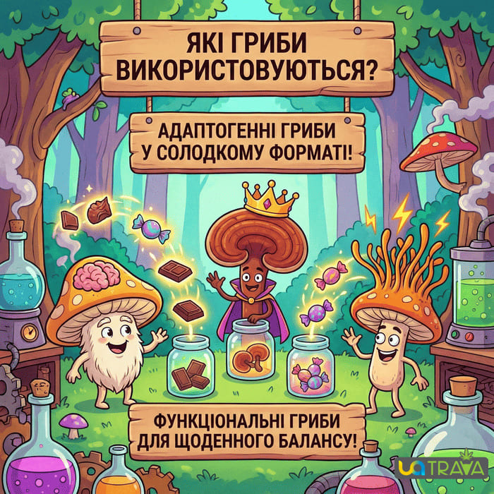 У грибному шоколаді та цукерках часто використовують адаптогенні гриби, які традиційно асоціюються з підтримкою організму в умовах навантаження. Їх обирають не заради різкого ефекту, а для поступового вирівнювання стану.